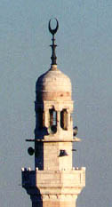 ![]() Above: Mosque minaret with those ubiquitous and multipurpose loudspeakers, Ramallah, 1996. Photo by Nigel Parry. |