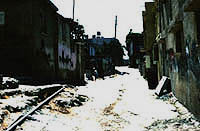 Above: The narrow streets of a West Bank refugee camp, 1989. Photo by Nigel Parry. |