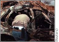 When the Palestinian Authority (PA) turned the burner onto Hamas, saying its members had killed Muhyideen Al-Shareef, Adel Awadallah, the person supposedly to have pulled the trigger before getting Ghassan Addassi to set the charges to destroy the body, appeared masked on a video cassette (left) delivered to the Reuters office in Gaza to categorically deny the charges.